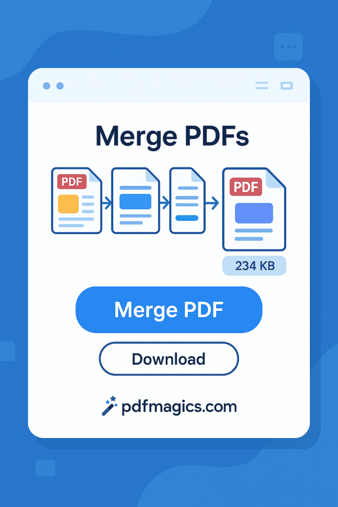 Meta Description: Merge PDFs online for free with PDFMagics. Combine multiple PDF files into one in seconds. No signup required – 100% secure and mobile-friendly!